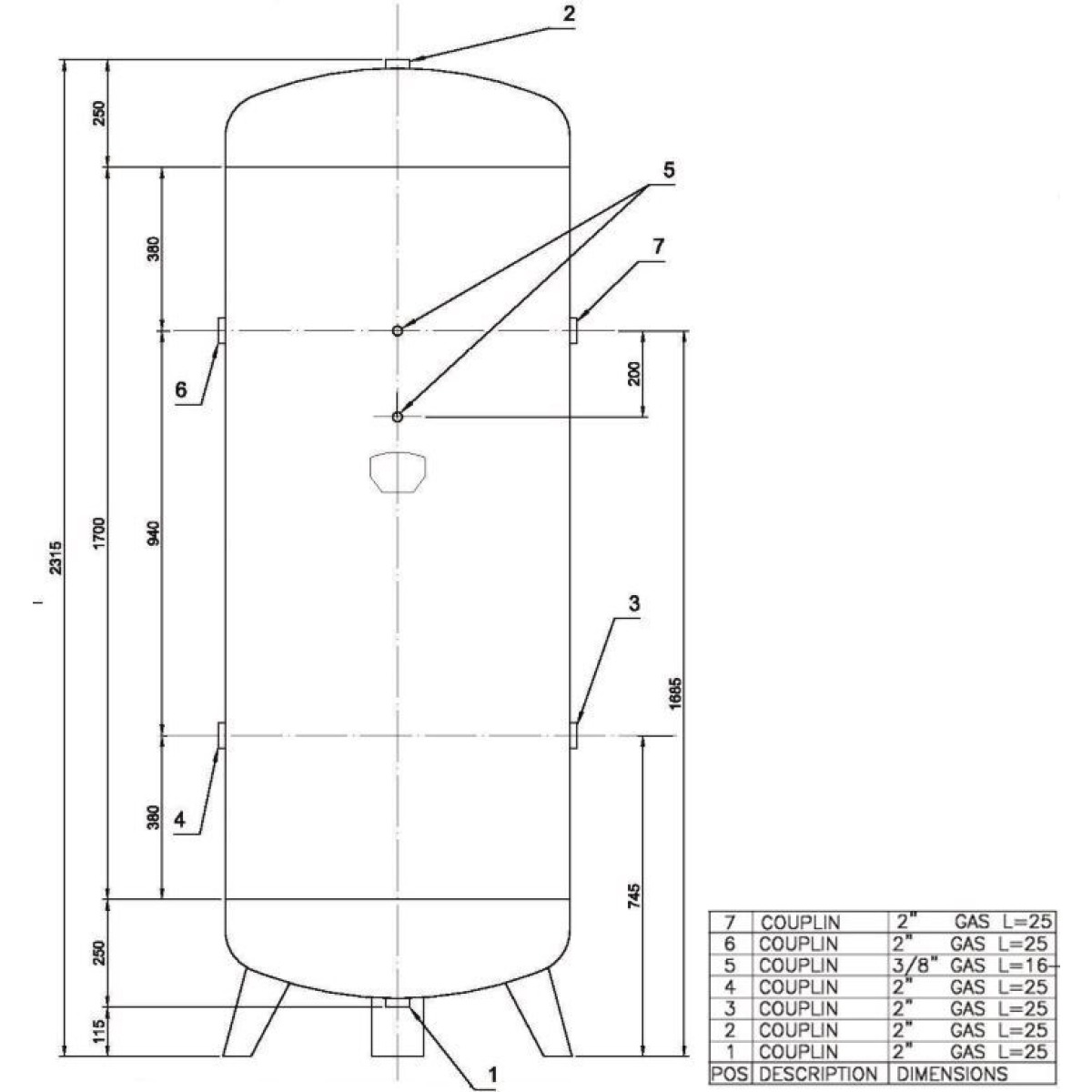 Platzsparender, stehender Druckluftbehälter mit Pulverbeschichtung