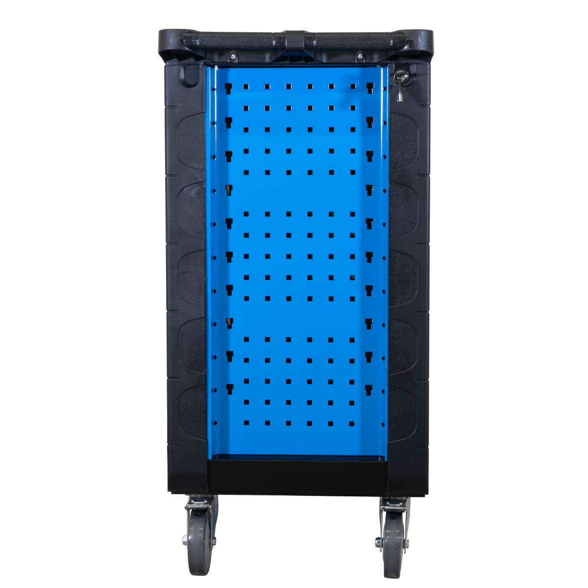 Hochwertig pulverbeschichteter Werkstattwagen mit komfortablen Vollauszug der Schubladen. Der ergonomische Schiebegriff und Kantenschutz erleichtert das Handling. Große Ablagemöglichkeit oben sowie Kleinteilefächer erleichtern ein ordentliches Arbeiten. Dank der Auszugsicherung der Schubladen, des zentralen Schließmechanismus mit zwei Schlüsseln und den Feststellbremsen an den beiden Lenkrollen werden auch die Sicherheitsaspekte berücksichtigt. Auch die Ordnung kommt nicht zu kurz - durch die Griffleisten mit Beschriftungsfeld findet jeder das Werkzeug, das er sucht in kürzester Zeit. Die Lochbleche an beiden Seiten ergeben nochmal neue Aufbewahrungsmöglichkeiten. Damit Sie auf fast alles vorbereitet sind, bietet unser 255 teiliges Werkzeugsortiment aus hochwertigem Chrom-Vanadium Stahl eine gute Auswahl.
